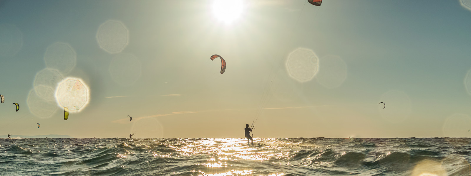 Kitesurfing är en våghalsigare form av vindsurfing. En härlig mix av wakeboarding, drakflygning, segling och till viss del fallskärmshoppning. Sporten är 100% vindberoende. Man startar från en plan yta där man pumpar upp luftfickor med draken. Sen stiger man på brädan som ligger i vattnet och ger sig iväg. Kicken när allt funkar är magisk!