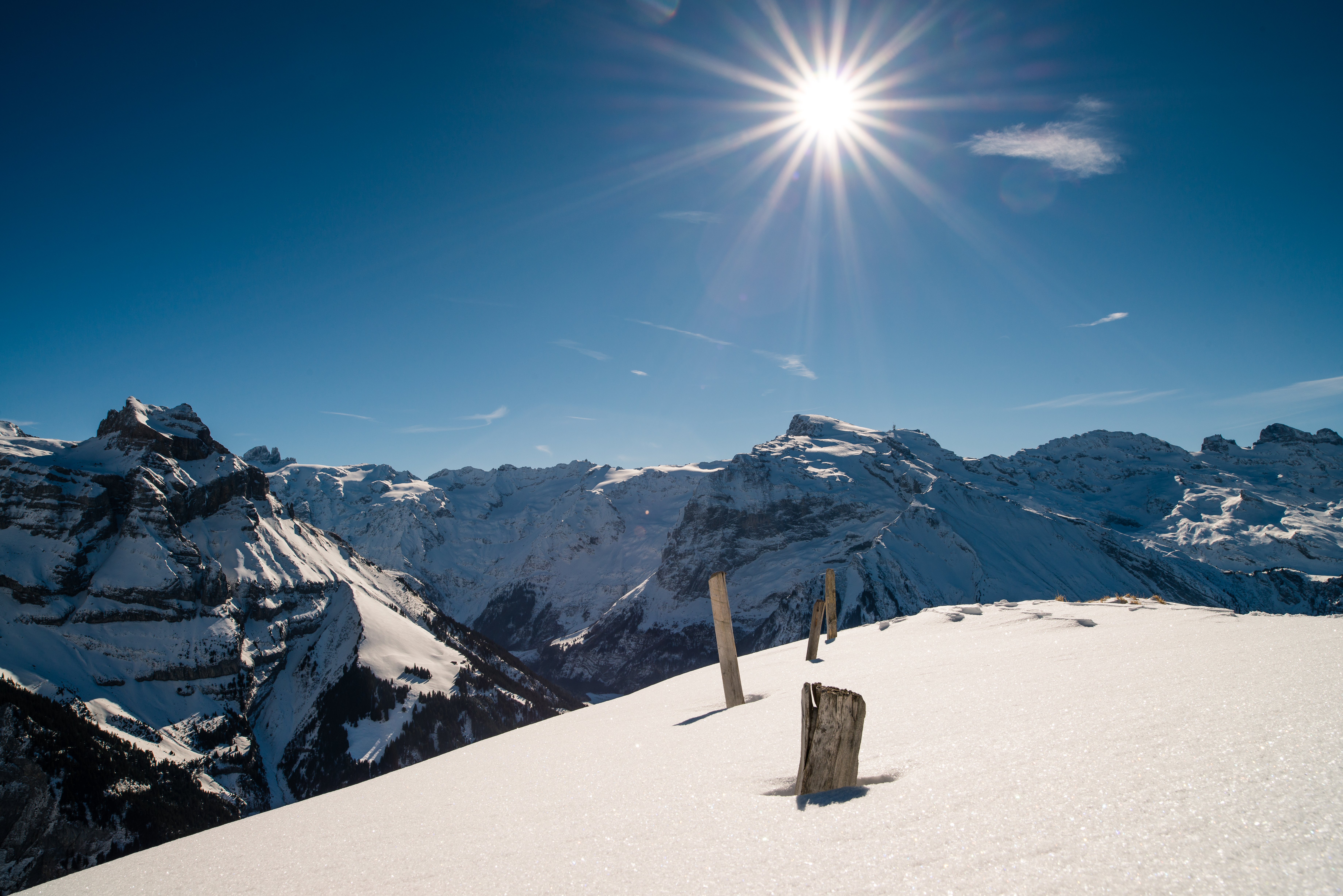 I Engelberg kan ni åka skidor från Klein Titlis på 3 030 meter. På vägen upp i den roterande liften passerar ni ovanför den imponerande glaciären. Åker ni ända ner i dalen har ni en timme senare passerat några glaciärsprickor och gödselstackar och pisten avslutas abrupt vid en schweizisk afterski.