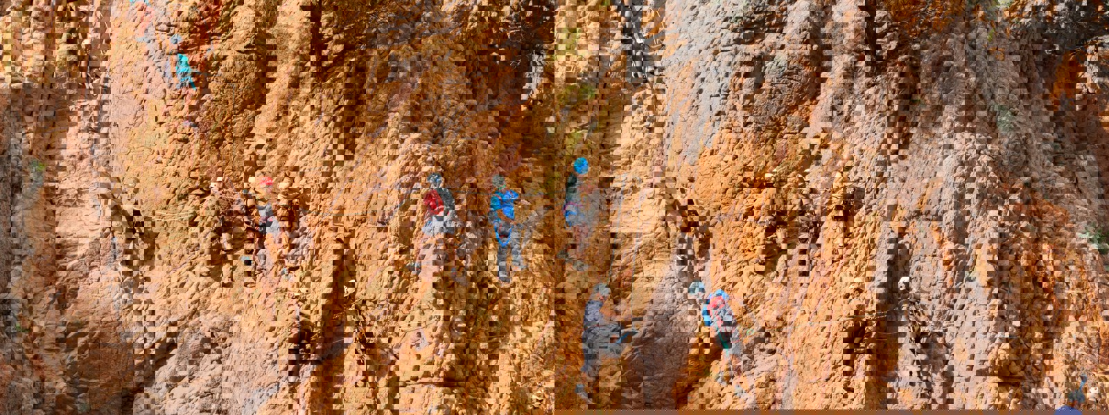 Via Ferrata är en enklare och tryggare form av klättring där ni följer en säkerhetslina längs en bergvägg. Med sele och vajer klättrar ni uppåt med stöd av fasta steg och handtag, vilket gör det möjligt för alla att delta, oavsett erfarenhet. En perfekt aktivitet för att stärka tilliten inom teamet och njuta av fantastiska vyer tillsammans.