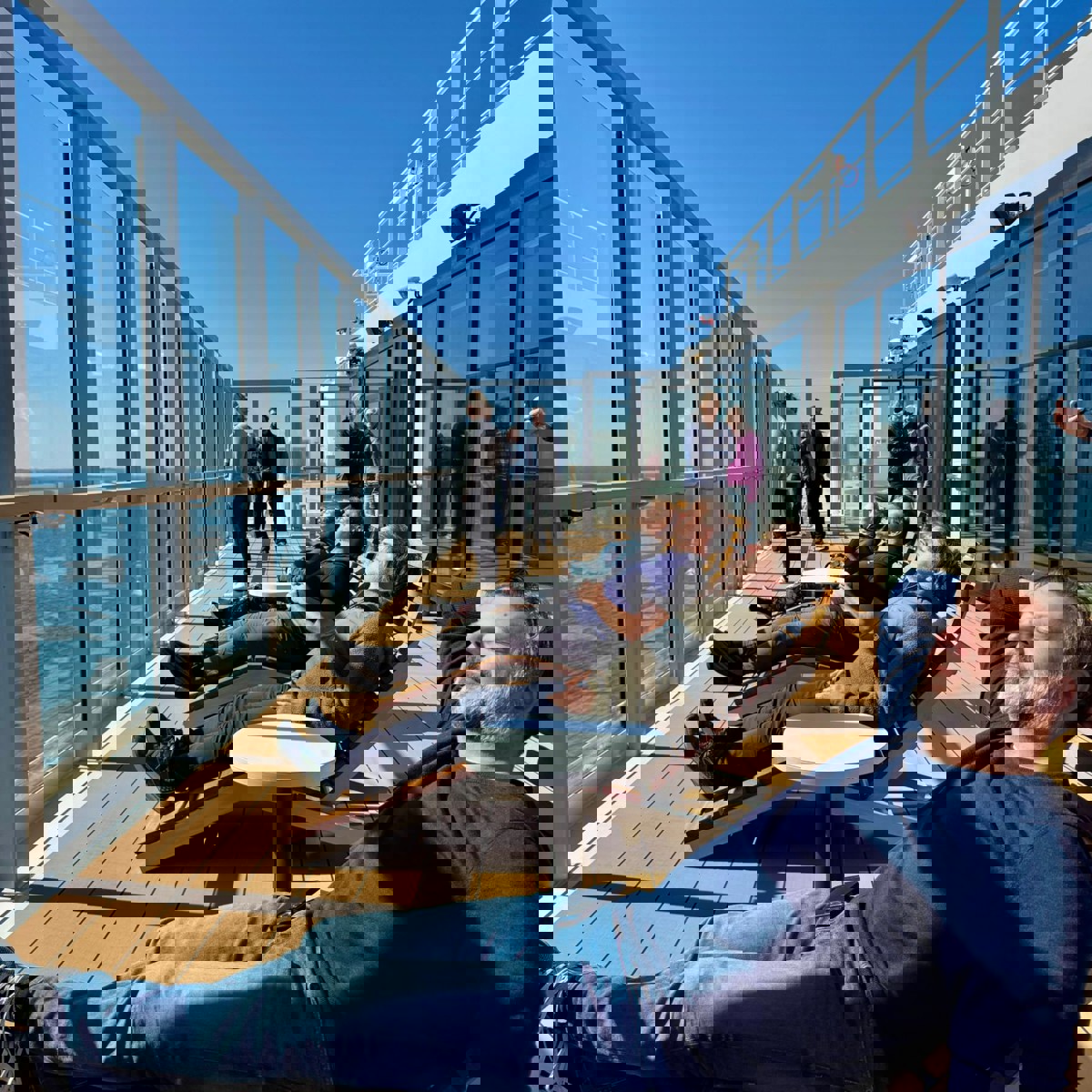 Sedan var det dags för lunch – och wow, vilken buffé! Den erbjöd allt från fräscha sallader, fisk och skaldjur till varmrätter, och till efterrätt ett dignande bord med glass, mousse, paj, ostar, kex, godis, kaffe och te. All dryck ingick såklart, vilket gjorde måltiden komplett. Riktigt gott och väldigt trevligt! Efter lunchen avslutade vi med ett sista konferenspass innan vi njöt av solen ute på däck. Ett perfekt sätt att avrunda våra dagar tillsammans.