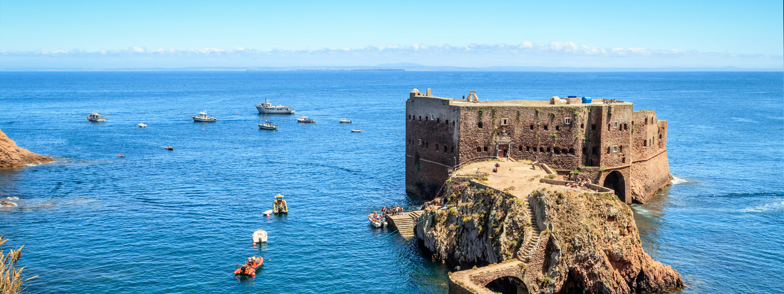 Cirka 10 kilometer ut i havet finns Berlengas skärgård, hit kan vi åka antingen med vanliga färjor eller med egna RIB-båtar. Skärgården är ett naturreservat och har en magnifik borg som sticker upp ifrån vattnet