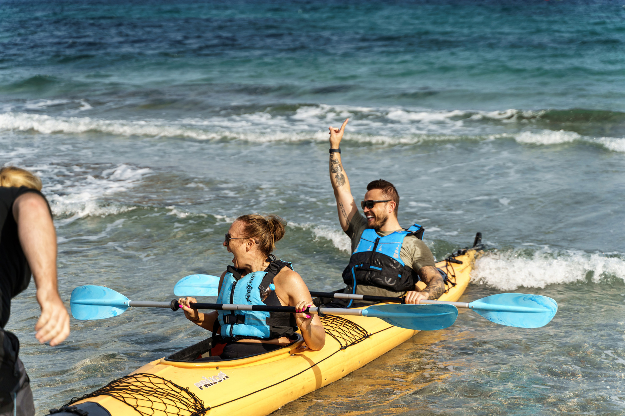 Ge er ut tillsammans på ett spännande 2-timmars havskajakäventyr med start från den fantastiska stranden i Kavouri, Aten. Paddla tillsammans, upplev den naturliga skönheten längs kusten och stärk era band med varje paddel-tag. Njut av det azurblå vattnet, dela skratt, utmaningar och fantastiska ögonblick tillsammans.