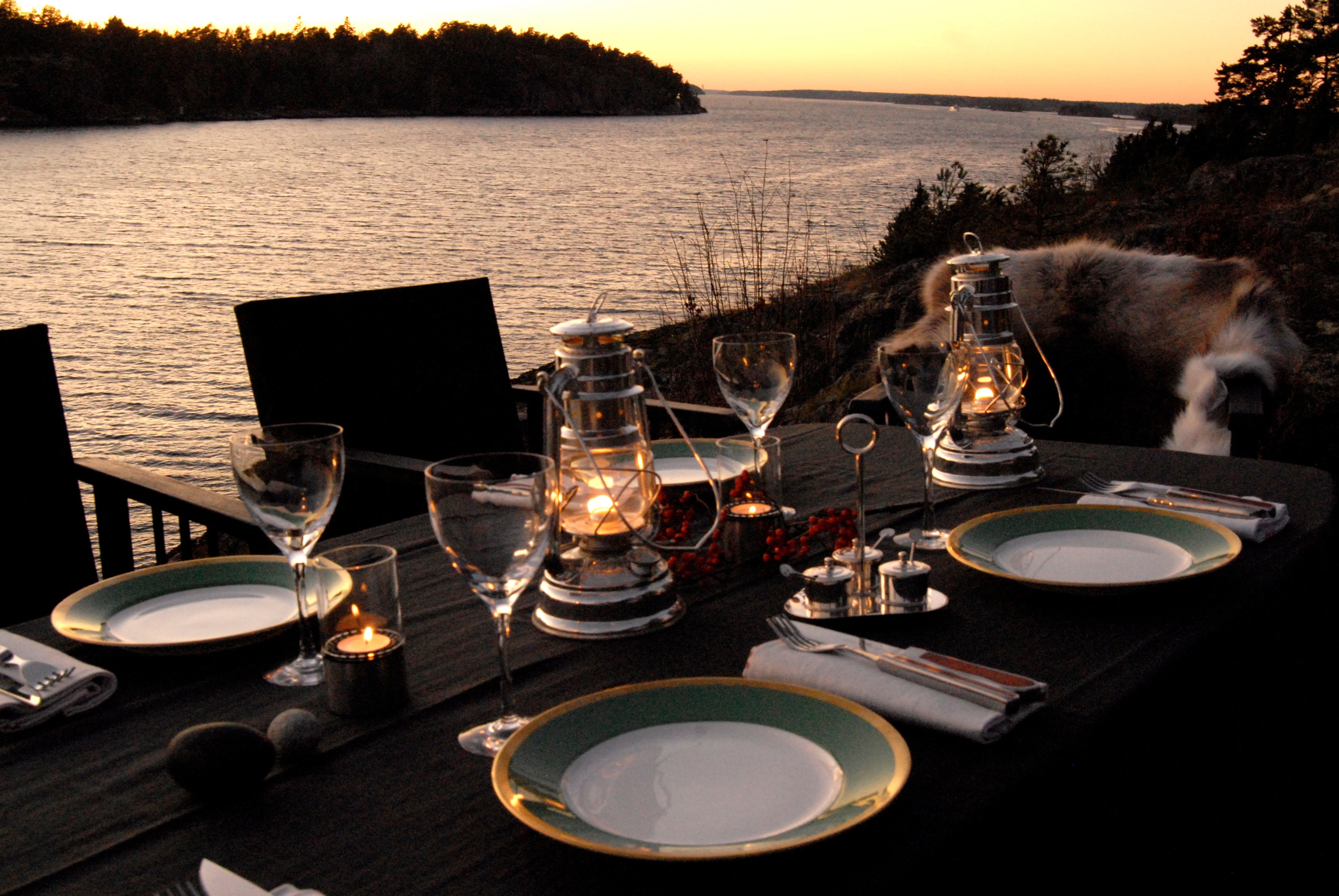 På kvällen bjuder vi in till en gourmetmiddag med egen kock och magisk utsikt och solnedgång över fjärden. Önskar ni kan vi även se till att den vedeldade bastun och badtunnan är uppvärmd för den som vill ta sig ett dopp, antingen innan middagen eller varför inte ett kvällsdopp?