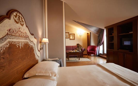På hotellet finns även bastu, gym samt pool att slappna av vid efter en lång skiddag. Hotellrummen är inredda i klassisk varm alp-stil. I hotellets restaurang äter man god internationell och lokal mat, som om möjligt smakar ännu bättre med den vackra utsikten.