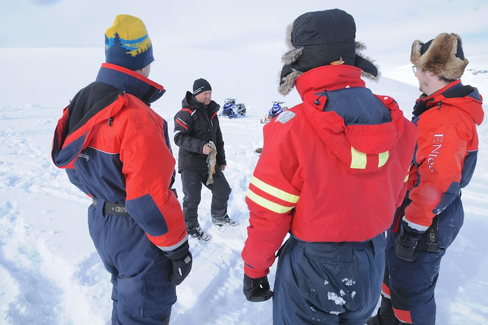 Vinterfiske tar er tillbaka till barndomens magi med metspö och borr i isen. Här i Hemavan är röding målet – hitta en sjö, borra hål, rigga spö och njut av stillheten. Vi tar med oss varm dryck, mackor, fäll eller liggunderlag och ni klär er lite varmare än ni tror. När ni sitter där, väntandes på napp, känner ni historiens vingslag – människan har fiskat i över 40 000 år - njut!
