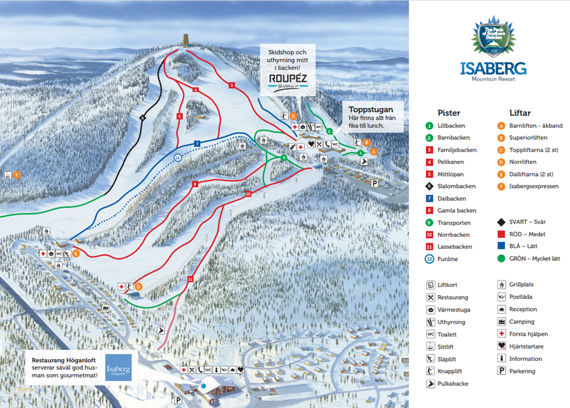 Välkommen till begreppet ”Smålandsfjällen”. Det summerar bra vad som här erbjuds; ett riktigt berg med 11 nedfarter i två nivåer och flera väderstreck, en skidort med naturligt läge mitt i vildmarken. Hit kommer man för att det spritter i skidnerven. Närmsta skidåkningen för södra Skandinavien. Isaberg är södra Sveriges största skidanläggning, beläget i Småland, med pistpreparering i toppklass. Här finns 8 liftar och 10 pister, från de barnvänligt gröna till hisnande svarta.