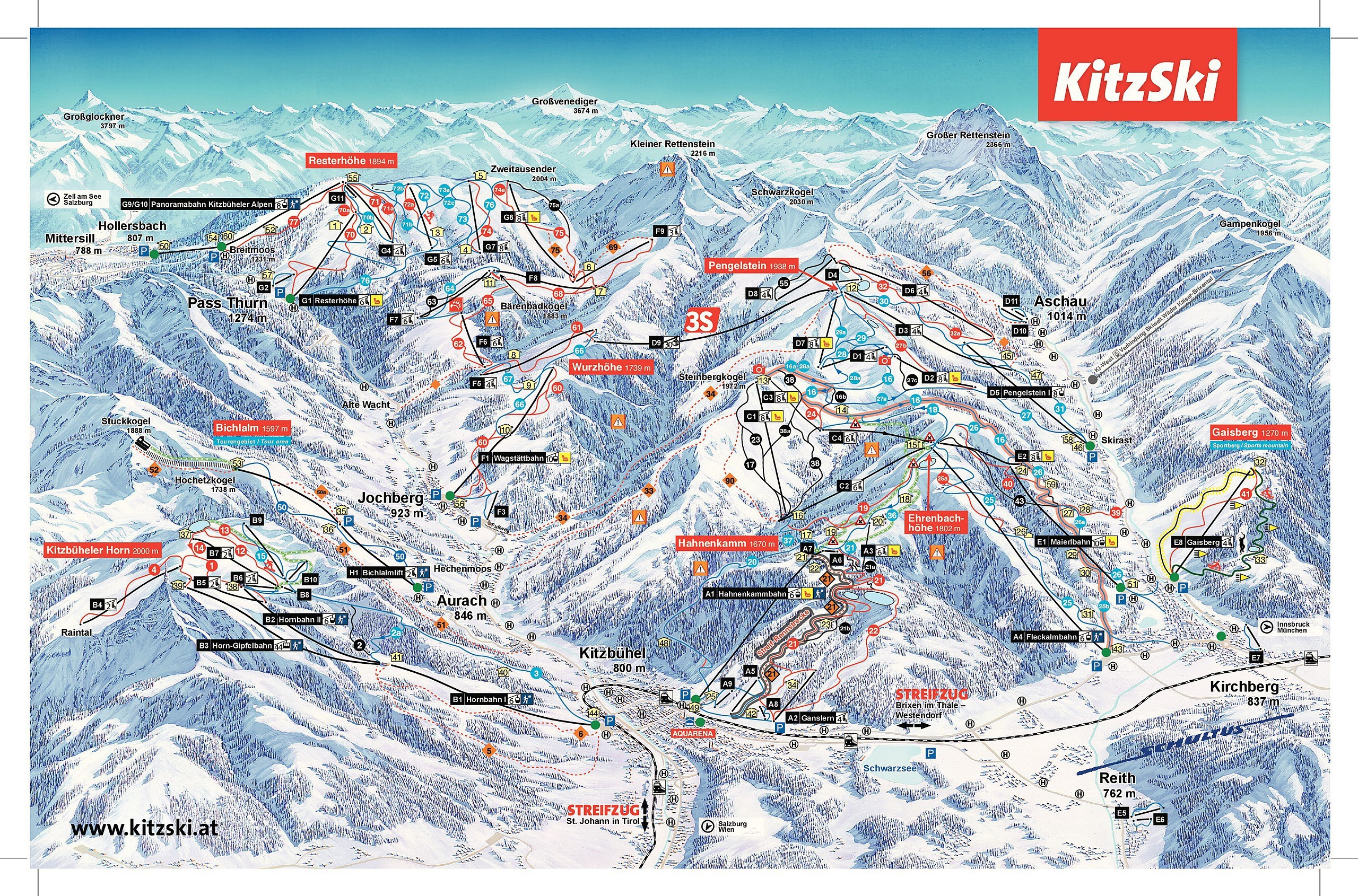 Precis som det var 1892 anses Kitzbühel än idag vara en trendsättare inom skidåkning. År 2013 utsågs Kitzbühel till det bästa skidområdet i världen av www.skiresort.de som är den största skidtestarportalen i världen. Här erbjuds ni ett stort skidområde - Kitzbühler Alpen – med 57 liftar och 233 km välpreparerade pister. Högsta skidåkningen är på 2000 meters höjd och skidsystemet är sammanlänkat med grannbyarna Kirchberg, Jochberg och Aschau.