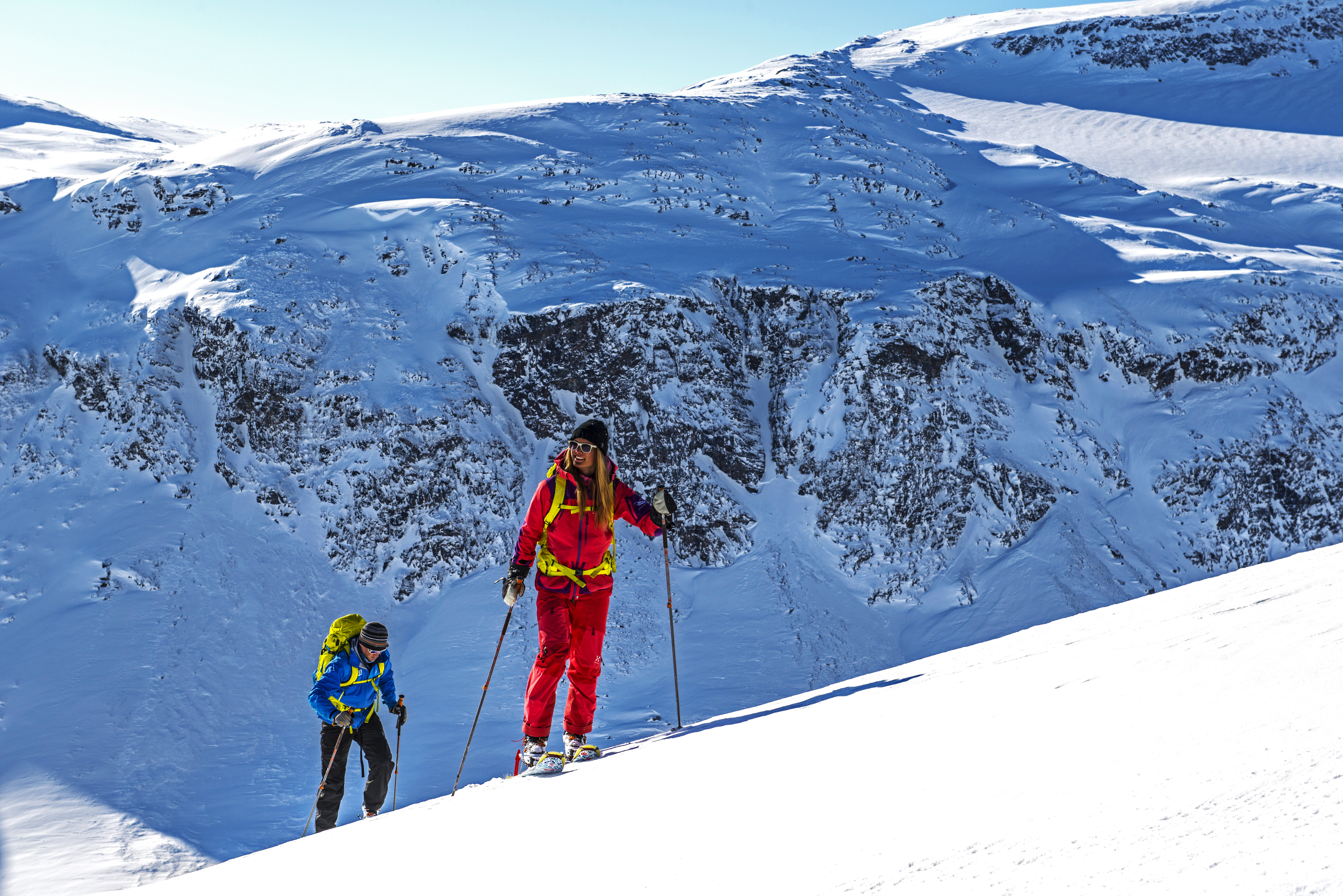 Tura upp på Nordalsfjället eller "fjäll till fjord" med guider. Om man inte vill tura så finns det fin heliskiing att tillgå.
