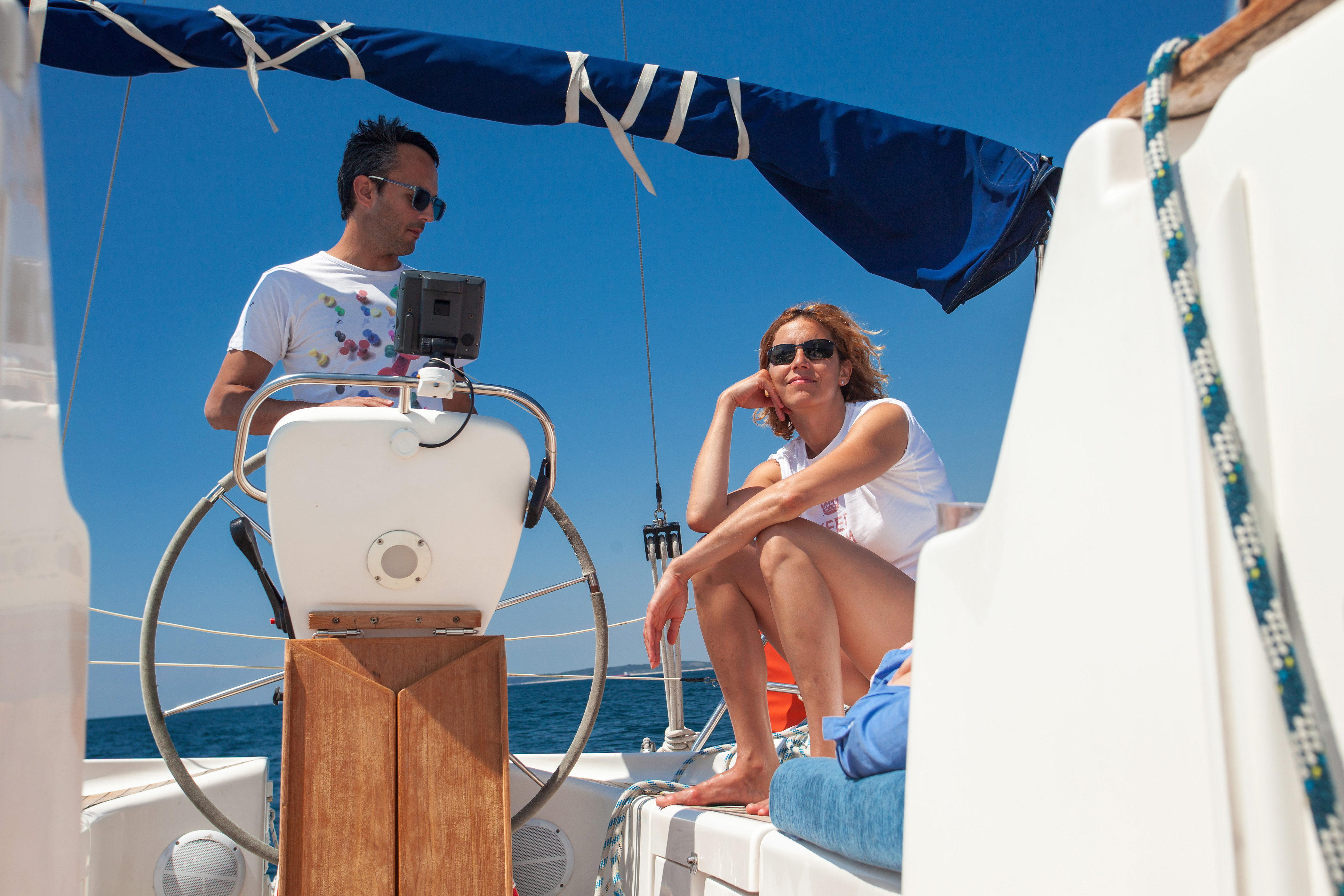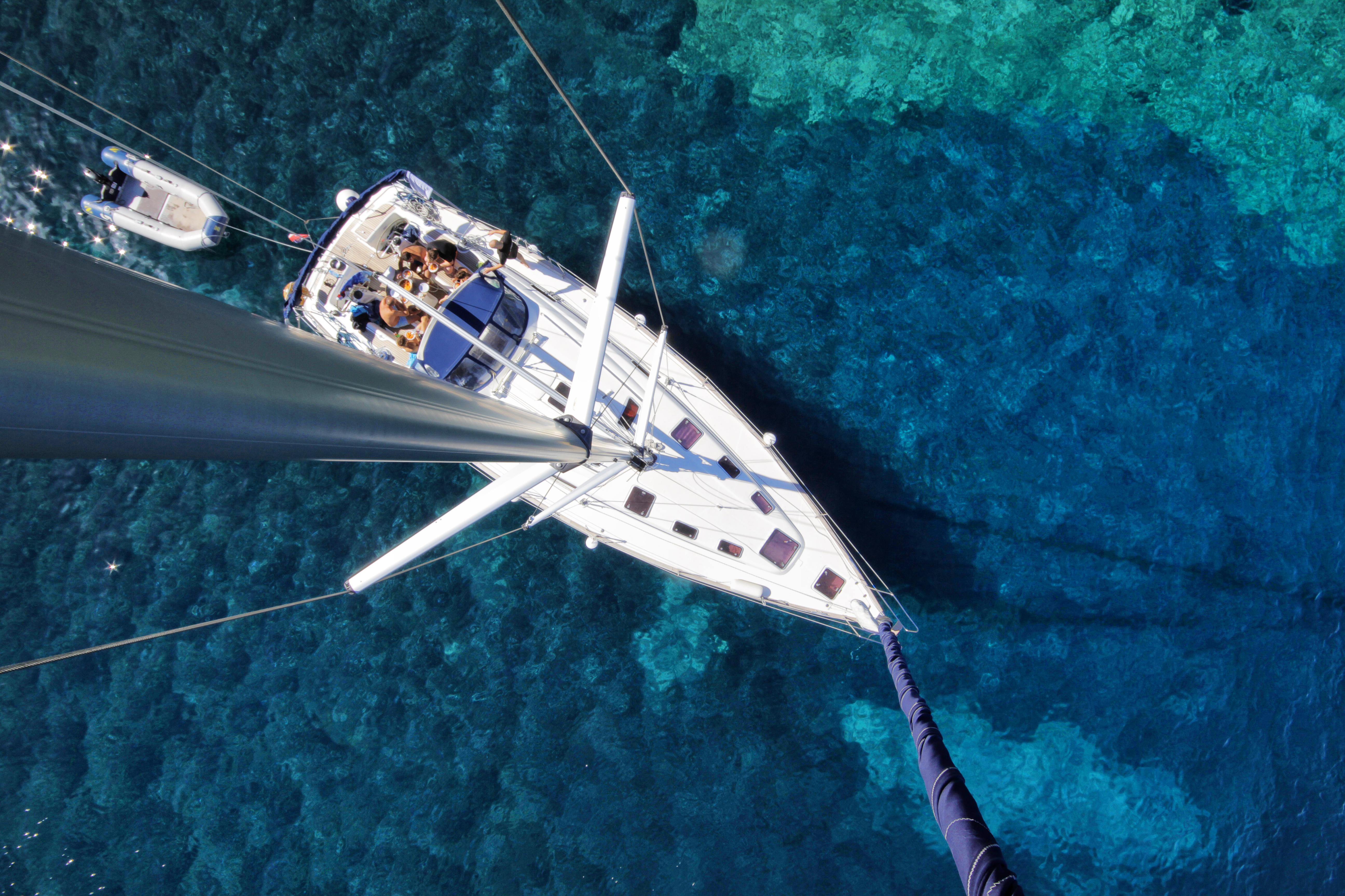 Morgondoppet och kvällsdoppet i det klara turkosa vattnet, aftersail i sittbrunnen efter dagens segling.