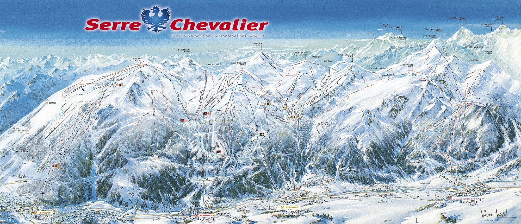 Den avslappnade atmosfären gör inte avkall på riktigt bra skidåkning. De fyra byarna ligger på olika höjd och har alla liftar och kabiner som tar er upp i systemet. Längst ner i dalen på 1’200 meters höjd ligger staden Briançon – som härstammar från Napoleons tid med en riktigt gammal och mysiga stadskärna. Här finns gott om restauranger, barer, butiker och liv och rörelse. Lite längre upp hittar ni Chantemerle – 1’350 m.ö.h. som är alpinskidåkaren Luc Alphands hemby. Luc är en lokal skid-idol som vunnit världscupen men som sadlat om och satsar på rally istället. På väg upp i dalen mot det klassiska alppasset Col du Lautaret ligger de två riktigt mysiga alpbyarna Villeneuve – 1’400 m.ö.h och Monêtier les Bains – 1’500 m.ö.h.
