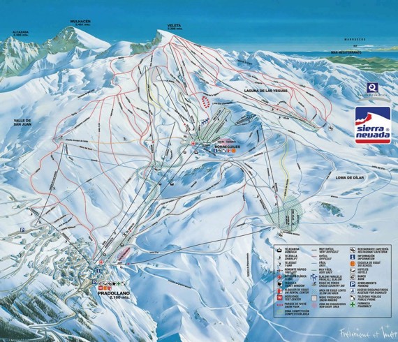 Sierra Nevadas skidort Pradollano är den sydligaste skidorten i Europa och garanterat en av dem med flest soltimmar. Byn ligger på 2100 meters höjd och från en av de högsta topparna ser man vid klart väder ut över Medelhavet och ända till Afrika. Med 1300 meter i fallhöjd finns det långa fina piståk och här blir det sällan liftköer eller trångt i backarna.